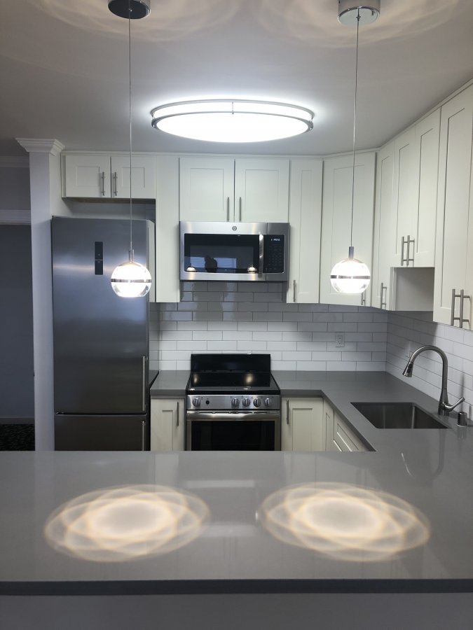 New counters, cabinets and bar dining area