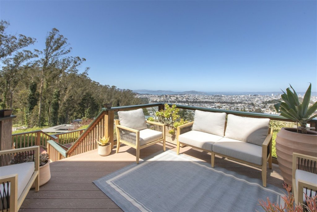 ***JUST RENTED***Extraordinary 3-level house. 4 Bedrooms and 3 bathrooms. Upper Cole Valley. Amazing views. Pets are negotiable.The house is on a double lot on a cul-de-sac in upper Cole Valley.Offered completely furnished.Main level:- Front courtyard- Spacious open-plan living room with a dining alcove- Gas fireplace- Amazing panoramic views of the City and Bay- Access to a large, multi-level deck complex and ground-level shared garden, also with amazing views.- Large kitchen with stainless steel appliances and counter-tops - Dual built-in ovens - Large refrigerator - Dishwasher - Five-burner gas range - In-sink disposal- Hardwood flooring throughoutTop level:- Newer carpeting on stairway- Hardwood flooring in bedrooms- Master bedroom - Panoramic views of the City and Bay - En suite stone bathroom with a shower-over-tub, and great views - En suite sunny office room with newer carpeting and access to a small deck - Two walk-in closets- Second bedroom - Panoramic views of the City and Bay - En suite bathroom with the same great views - Good closet space- Third bedroom - South-facing and sunny - Has its own entrance, but can be joined to or separated from the second bedroom via pocket doors - Good closet space- Extra closet in common areaLowest level:- Large and bright family room with access to the decks and backyard- Completely renovated full kitchen- Bedroom with carpeting- Recently remodeled full bathroom with a pedestal sink and a claw foot tub and shower- Extra storage spaceLocation:- High up on a hill, quiet and secluded- Easy access to shops and restaurants in Cole Valley, Inner Sunset, Noe Valley, and more.- Easy access to the 280 freewayOther Notes:- Easy street parking- Laundry appliances are included- Pets are negotiable- The minimum lease term is 12 monthsAgent information:Mazal BordoRelocation Agent | REALTOR CA DRE #: 01243370