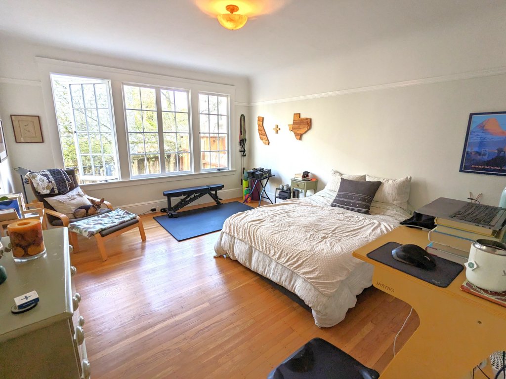 This large remodeled 1br/1ba can also be used as a 2br as both rooms have closets and doors. High ceilings, large eat-in kitchen, and tons of closet space in this quiet, cozy home.