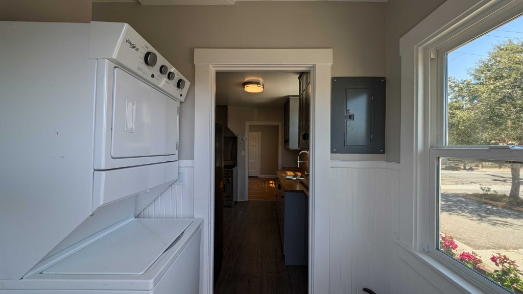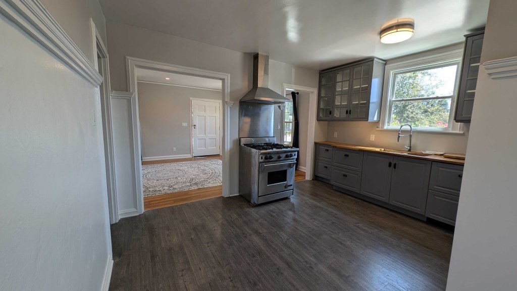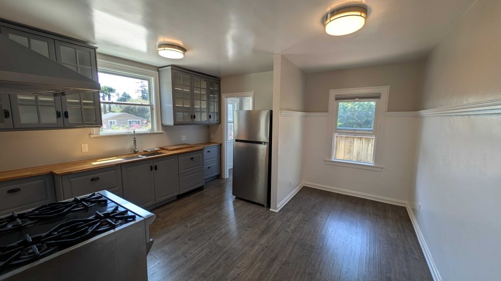 This completely renovated, huge 2-bedroom, 1-bath apartment (+1100 sq ft) is located in a quiet, safe Westside neighborhood of Santa Cruz in an elegant historic triplex. Perfect for a quiet individual or couple working from home seeking charm, space, and comfort.This is the sweet spot neighborhood of Santa Cruz, A great Westside location in a safe, quiet-street, great neighborhood. An easy walk to downtown and one block to commuter lines. One block to a natural food store (open late) and great restaurants. Fast 17 commute access and UCSC convenient.The Space:• Spacious layout: large living room + open dining area• Sunny corner unit, with front porch + private backyard• Fully updated: new electrical (many outlets), new plumbing, new lighting, black-out curtains + privacy sheers• Refinished original hardwood floors throughoutBright and quiet: new dual-pane windows flood rooms with natural light2 Bedrooms or dedicated WFH office spaceKitchen &; Laundry:• Wolf range, stainless appliances, new fridge and hood• In-unit washer/dryerParking &; Location:• 1 reserved off-street parking space • Ample street parking with a resident permit• 1 block to natural food store, walkable to downtown + restaurants• Easy access to UCSC and Hwy 17Elegant landscaped front yard, gardener included.Requirements:• Non-smoker• No pets (to protect original wood floors and historic features)• Credit check, rental history, and references required