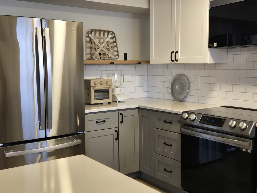 Well equipped kitchen. Bathroom towels and bedroom linens included. Spacious with lots of storage throughout the unit.