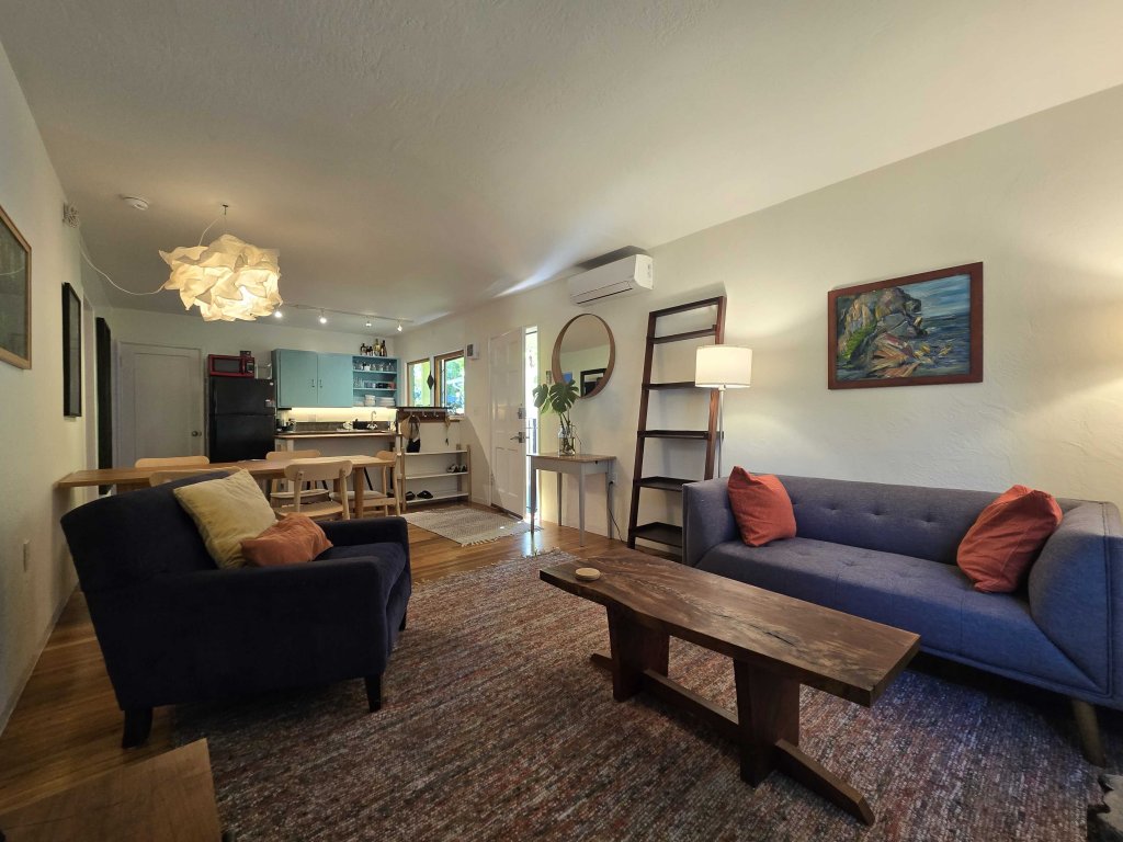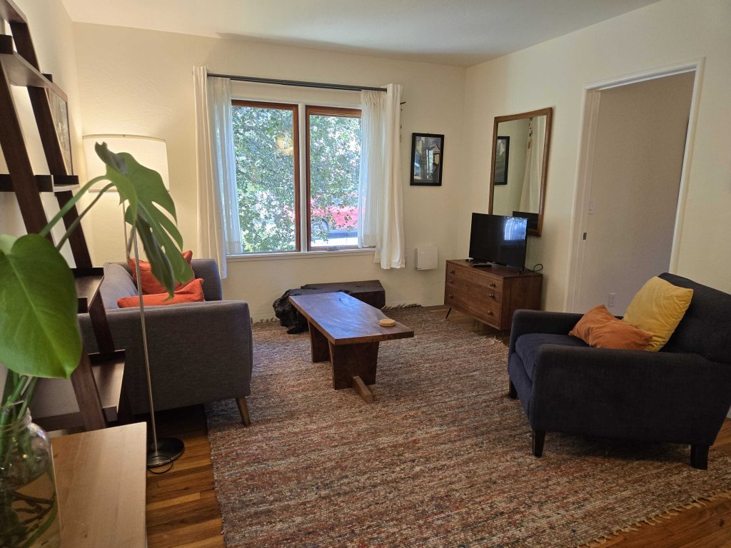 This well-cared for, furnished (optional), three bedroom apartment is available June 1. The apartment accesses a large sunny, garden with picnic table, custom-made Adirondack chairs, vegetable planter beds and young fruit trees and herbs.Conveniently located in Central Berkeley, close to restaurants, cafes, parks and the Berkeley Bowl supermarket. Less than 1.5 miles to UC Berkeley, bike or bus in under 15 minutes.This unique and beautiful apartment contains many green features with custom wood built-ins. The unit was completely remodeled as part of a year-long remodel and energy efficiency upgrade of the whole four-unit building. Rent includes high speed internet and garbage. A washing machine and dryer are in the Unit.Features:Kitchen:Salvaged granite countersRedwood counter with coconut oil finishOriginal cabinets restoredIkea butcher block islandBathroom:Cast enameled tub, white subway tile, and low flow tub/shower fixturesDual flush toiletCeramic sink and integral vanity with low flow fixturesLimestone floorEnergy star washer and dryerLarge mirrored medicine cabinetsBedrooms:Full bedsCotton or wool rugsWood or bamboo desks and shelves and dresser or side tableNew oak floorsGeneral:Original oak floors refinished with natural plant resin based finishCotton drapes and sheersSuper energy efficient lighting with 90+ CRI LEDsEco friendly, paper pulp (blown-in cellulose) insulation in all exterior walls and ceiling and cotton batt insulation in floorSolar hot water heater with backup tanked water heaterSuper energy efficient, heat pump HVAC heating and coolingEnergy-efficient clad wood windows with salvaged wood sillsNo petsOutside:Private entranceShared access to large sunny rear yardFruit trees and native landscapeRoom for vegetable gardenOff street parking available for $100/monthAmple bike parking in secure rear yardLocation:Less than 1,5 miles to UC Berkeley, bike or bus to campus in under 15 minutes1 block to bicycle boulevardLess than 1 mile to North Berkeley BART stationEasy street parking