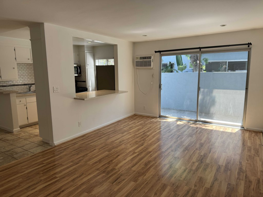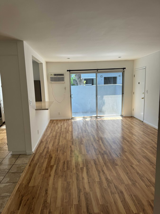 A walker's paradise - walk score of 94. Completely remodeled apartment, ground floor unit in 20-unit building. Garage Parking. Beautiful unit in a quiet controlled-access building with 16 CCTV camera security system. Laminate flooring. Stove oven, microwave, dishwasher, refrigerator/freezer, air conditioning, overhead fan in living room/dining room area; wall heating system, private patio. Spectrum Cable/Internet hook up point. Owner pays for water. Central location with great access to shopping/freeways/dining/studios. Very open and spacious architectural design. Controlled access, gated allocated parking space. Lots of permitted street parking. Shared laundry on premises. Will consider small QUIET pets with additional deposit. Security deposit can be broken up over first three months. Can do a virtual showing as well via ime/Zoom.