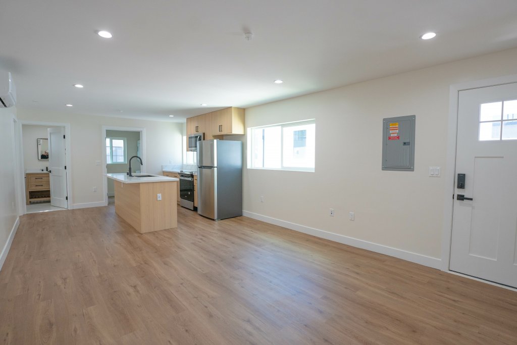 Welcome to 1034 S Westmoreland Ave Unit 1/2 in Koreatown, a brand new 2 bedroom 2 bathroom ADU offering modern finishes and classic Los Angeles charm. This home features 841 square feet of bright and open living space with large windows, Mid-Century inspired touches, and warm, wide plank floors that create a welcoming and modern feel. The kitchen includes new stainless steel appliances such as an electric stove, refrigerator, dishwasher, and microwave, paired with sleek quartz countertops and European style cabinetry finished in clean black.