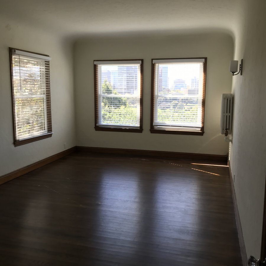 one bedroom one bath available.Parking available for small car $150hardwood floors double pane windowsLarge kitchenSteam heatNear Lake Merritt