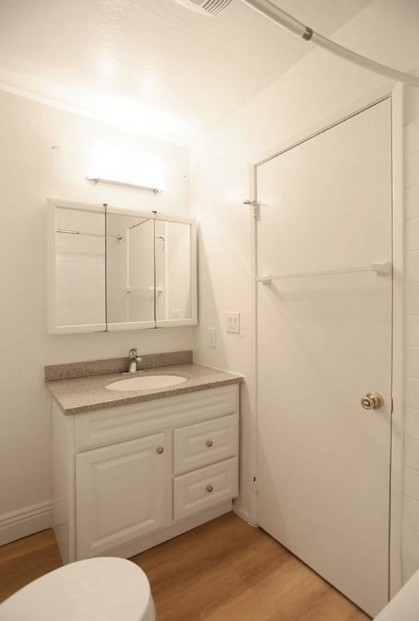 Bathroom has laminate floors