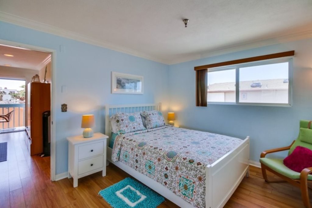Fully furnished midterm rental available for flexible stays of 30 days or longer.Denise's Beach Retreat This San Diego Vacation Rental is one of the best locations in Mission Beach just a couple blocks south of Belmont Amusement Park, 100 steps to put your toes in the water of the Pacific Ocean and just across the street is the lovely 4,000 acre Mission Bay Aquatic Park with a young children's playground just two blocks away.This very nicely and comfortably furnished condo is on the 3rd floor of an 8 unit building with an elevator. The living room has a small balcony with a table, chairs, and an electric grill. Relax on the highend sofa that converts into the most comfortable sofabed made today, with a memory foam mattress. When you need to use it, the coffee table moves out of the way easily on wheels.There is a large flat screen TV with cable, high speed internet with WiFi and a phone for local calling. The fully equipped kitchen is convenient for cooking and eating meals at home. The bedroom has a very comfortable queen bed and a view of the ocean from the window. Garage parking for one car, two beach cruiser bicycles for exploring the miles of boardwalk along the ocean. There are 4 beach chairs, 2 boogie boards, sand toys for kids, beach towels...and there is an inexpensive coinop laundry room on the first floor to wash out all those salty clothesJust one mile from SeaWorld, three miles from Old Town, and 79 miles from the downtown GasLamp District and San Diego Convention Center, the Embarcadero with it's floating museums and SeaPort Village, the famous San Diego Zoo and Balboa Park, and the San Diego airport. Just 30 to 45 miles North and NorthEast is LegoLand and Safari Wild Animal Park.Make this your comfortable home for enjoying all that San Diego has to offer. Powered by AMSIRES.com