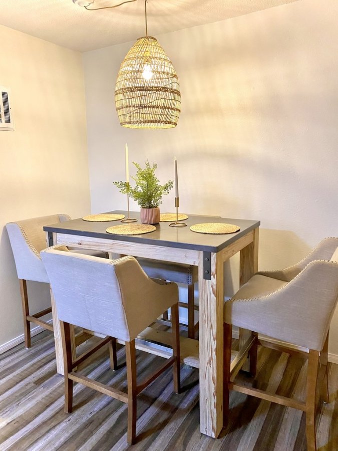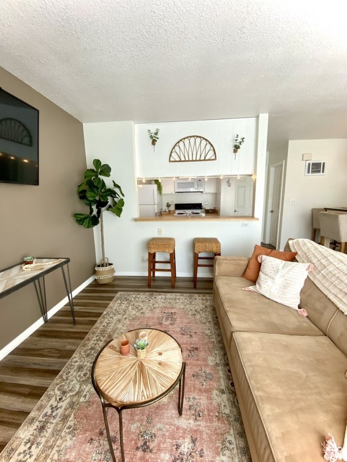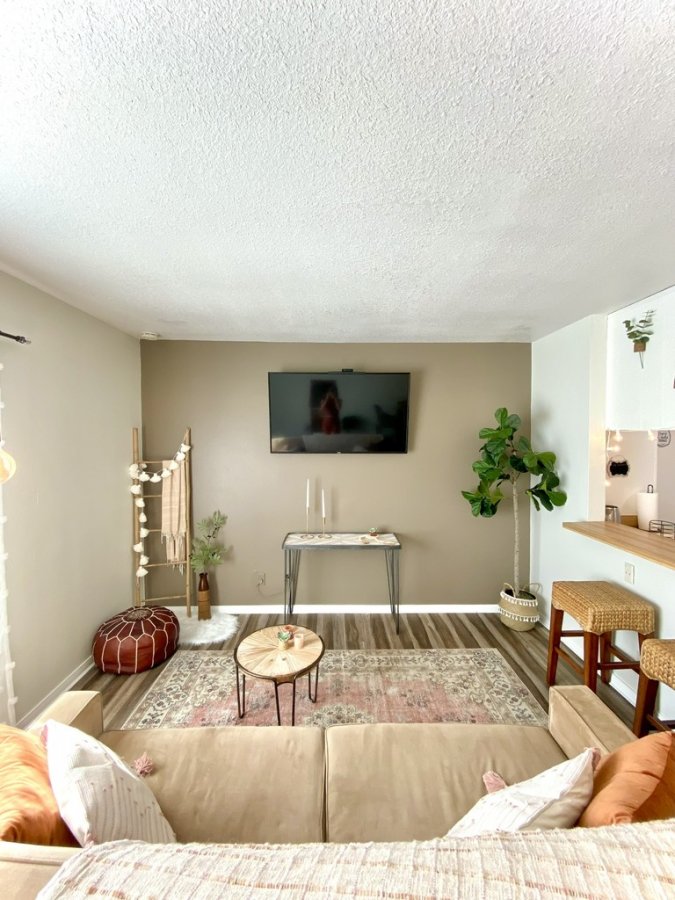 Boho luxurious onebedroom apartment in gated community with private bathroom. Kitchen with fridge microwave range. Dining table with 4 chairs. Wifi. Pull out couch with queen mattress. Flat screen tv w Apple TV. Near downtown, beaches, walking distance from grocery stores and restaurants. Air conditioning heating. Peaceful, quiet county atmosphere, urban setting, central to everything.Come stay in our luxurious Boho style apartment in Normal Heights, AKA the heart of San Diego Our spacious 1bedroom condo with wifi and AC features all the amenities youll need and FREE PARKINGPrivate Condo Gated community Free WiFi FULL KITCHEN electric kettle, toaster more Full bathroom with bathtub Bedroom with Full XL memory foam mattress Living room with TV, pull out couch and deskdining table Complimentary coffeetea sugarPowered by AMSIRES.com