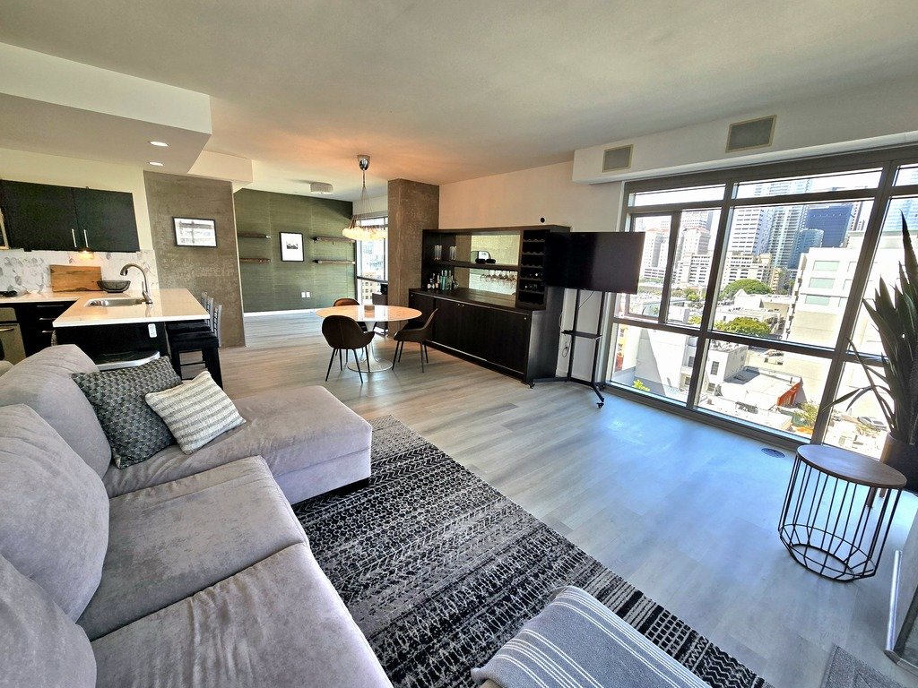 Reply to this AdWelcome to Residence 904 at The Mark, where resortstyle luxury meets the vibrant energy of San Diego. This stunning unit is a true entertainer's dream, offering a spacious 750 sq. ft. private patio perfect for basking in the morning sun and relaxing in the afternoon shade. Inside, you'll find a newly remodeled kitchen and bath, with high ceilings and floortoceiling windows that bathe the living space in natural light. The living area is equipped with a large screen and TV projector, ideal for hosting movie nights or watching your favorite shows in style. Storage is abundant, with a spacious walkin closet and an expansive bathroom adding to the comfort of this sophisticated residence, which also includes the convenience of an inunit washer and dryer.Located just steps away from Petco Park and the historic Gaslamp District, Residence 904 offers unparalleled access to the best of San Diego. The Mark provides a host of amenities designed to enhance your lifestyle, including a fulltime lobby attendant and 24hour security with closedcircuit video monitoring. Residents enjoy a 55foot lap pool, a hydrotherapy spa, and a sun deck complete with lounge chairs and contemporary cabanas, perfect for unwinding after a long day. The urban courtyard features three BBQ areas and a parklike grassy space, offering a serene escape in the heart of the city.The building's elegant lobby welcomes you home, while a wellequipped fitness center and a conference room cater to your personal and professional needs. With three highspeed elevators and a separate freight elevator, getting around is effortless. The private drive, known as "The Mark Lane," ensures exclusivity, while onsite property management takes care of all the details, so you can focus on enjoying your luxurious lifestyle.The residence itself is a masterpiece of modern design, with generous balconies, floortoceiling glass walls, and gourmet kitchens featuring granite slab counters and European cabinetry. Highend stainless steel appliances, including a gas range cooktop with a full hood, make cooking a pleasure. The unit boasts soaring ceiling heights of 9 to 14 feet, complemented by travertine or marble bathroom tile, and spacious walkin closets that provide plenty of storage.Experience the epitome of luxury living in San Diego, where every detail of Residence 904 at The Mark is designed to offer you the ultimate urban resort lifestyle.Walk Score 99100 Walker's paradiseTransit Score 83100 Excellent transitBike Score 92100 Biker's paradisePowered by AMSIRES.com