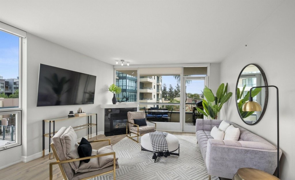 Modern Coastal Living in the Heart of Downtown San DiegoWelcome to your sophisticated urban retreat at 555 Front Street, nestled in San Diego’s prestigious Marina District. This beautifully upgraded condo offers a seamless blend of luxury, comfort, and style—perfectly suited for those who crave coastal living with modern convenience.Step into a sun-drenched open layout featuring floor-to-ceiling windows, elegant wide-plank wood flooring, and a chef-inspired kitchen complete with stainless steel appliances, sleek quartz countertops, and crisp white cabinetry. Eye-catching blue pendant lights and designer fixtures add a splash of personality to the clean, contemporary aesthetic.The spacious living area is anchored by a cozy fireplace and flows effortlessly to a private balcony—ideal for morning coffee or evening relaxation. A chic dining nook offers views of the vibrant cityscape and poolside amenities below.Additional highlights include:2 bedrooms, 2 bathroomsIn-unit laundryCentral A/C &; heatingResort-style amenities including pool, fitness center &; 24-hour securitySteps from Seaport Village, Gaslamp Quarter, waterfront parks, and fine diningWhether you’re entertaining guests or winding down after a long day, this home is the ultimate blend of downtown energy and serene coastal charm.
