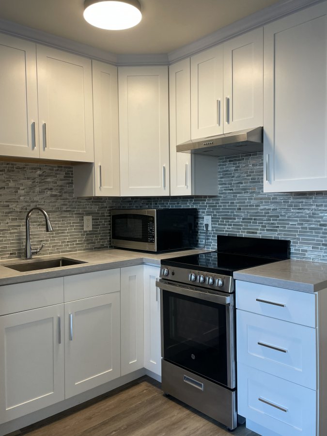 Kitchen includes stainless steel appliances, granite countertops and a breakfast island. This apartment has a small hall closet, bedroom closet and faux wood flooring throughout . Unit is internet ready. Plenty of natural lighting with great views.