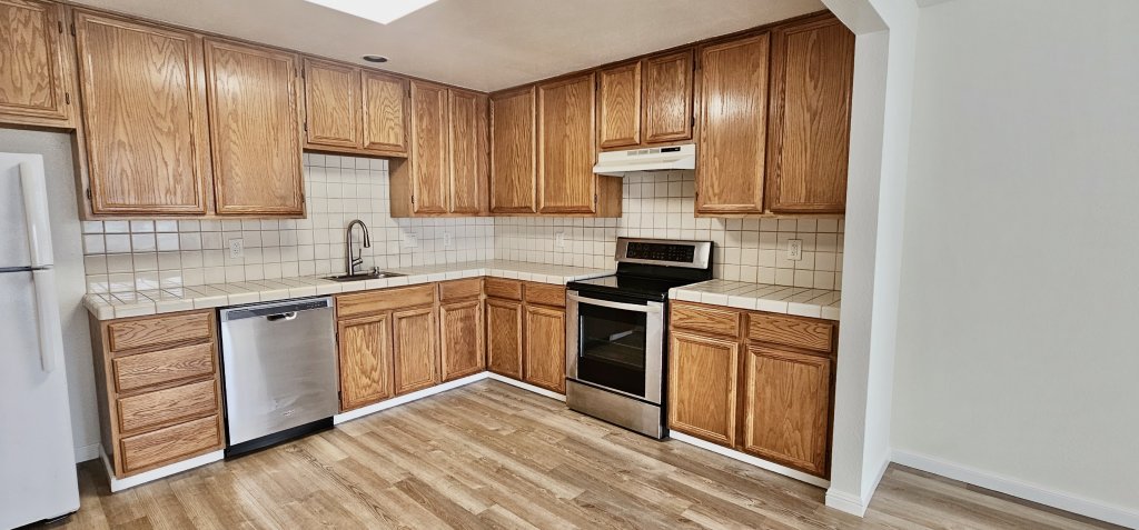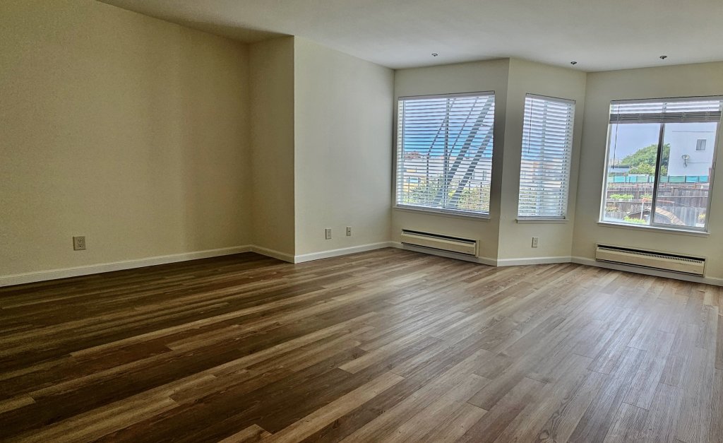 Well appointed 2 bedroom 2 bath apartment. 2bd floor walk-up. Hard-sur LVT flooring throughout. Double pane windowsNew paint Great natural lightLarge eat-in kitchen with electric range, dishwasher, abundant storage and counter space. 2 bathrooms, each with shower-over-tubOne car off street carport parking with remote opener in back of building included in rent