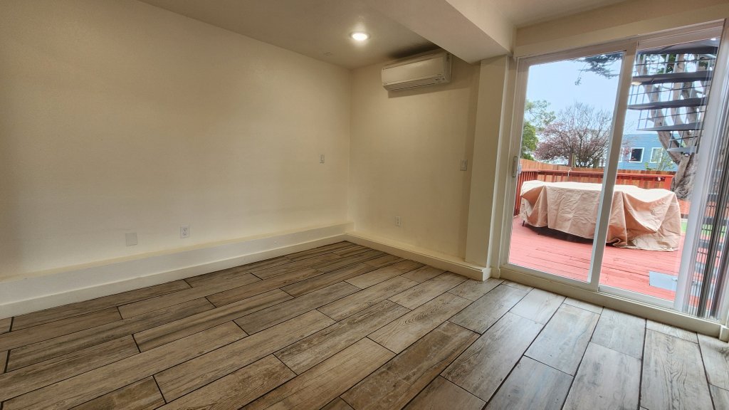 This renovated garden apartment is available for an early December move-in date. Located in the inner sunset on 24th Ave. between Lawton St. and Moraga St, offering residents easy access to the vibrant dining and shopping scenes on Noriega St. and Irving St. With the N-Judah Muni line just two blocks away, transportation is a breeze. This two-bed, one-bath layout offers a modern kitchen and bathroom, air conditioning, and direct access to a beautiful backyard furnished with outdoor furniture. Private dedicated laundry. Pet Friendly!