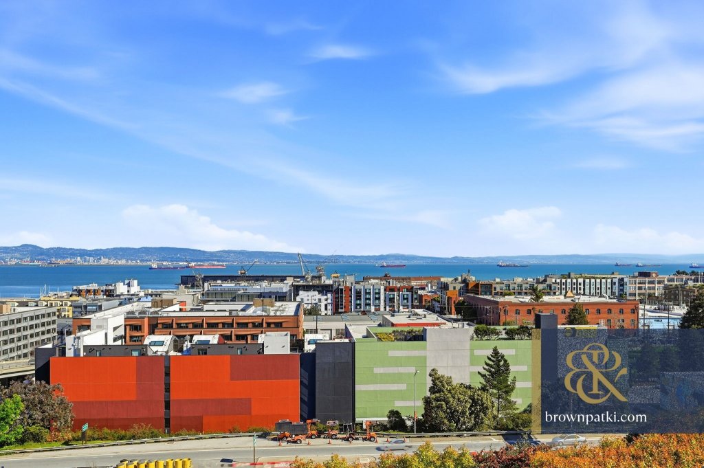 - The dramatic lower level has an open floor plan kitchen, dining and living layout looking out onto stunning views encompassing the City, Bay Bridge and the East Bay Hills. Floor-to-ceiling windows bring in plenty of light.