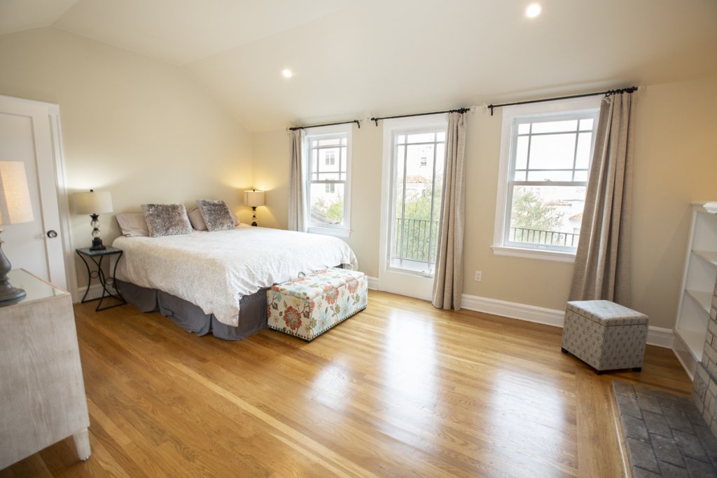 Updated Marina house beautifully furnished (or can be unfurnished), coupling vintage charm w/modern conveniences. Located on a flat block just steps from the Marina Green and Crissy Field. Beautiful oak hardwood floors. Natural light through a large bay of windows in the living room w/decorative fireplace flanked by bookshelves. Adjacent formal dining room leads to the updated kitchen w/Kenmore fridge and freezer drawer, gas range w/microwave above, GE dishwasher, garbage disposal, lots of white cabinetry and Caesar Stone counters. Off the hallway is a split bath, and ample storage/linen closets. Two mirror image bedrooms connect to a sunroom w/deck access to tranquil backyard w/lush mature landscaping (olive and lemon) and garden patio. Upstairs is the primary bedroom w/walk-in closet, decorative fireplace, flanked by bookshelves leads to sitting room/office. Off the hall is a small room w/twin and toddler beds and a full bath w/shower over tub. 5th bedroom is in back w/2 closets and access to a roof deck. 1-car garage (2nd can block driveway w/street parking permit) w/full-sized washer/dryer, and some extra storage. 94 Walk Score: multitude of eateries and shopping along Chestnut, Union, and Fillmore Streets.