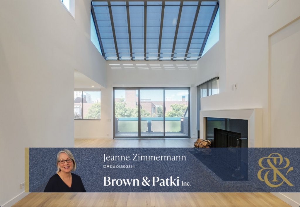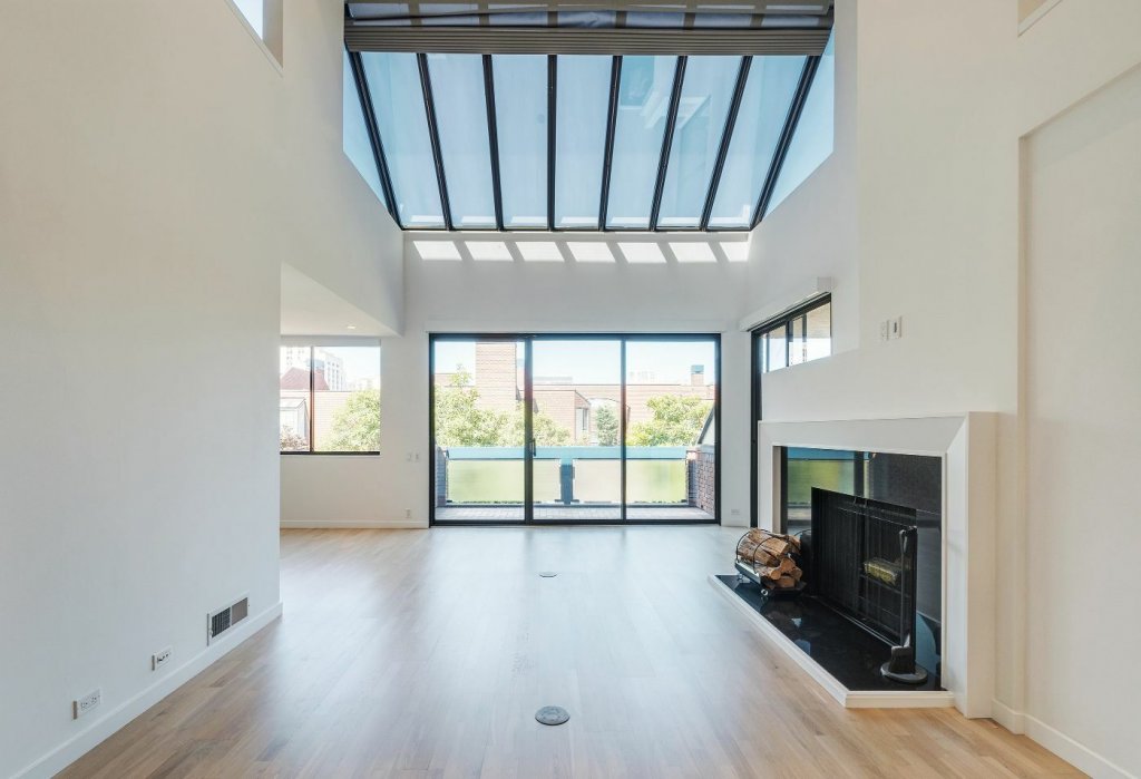 * Skylight over living room soaring to 17-ft in height, framing views of Transamerica pyramid &; Coit Tower