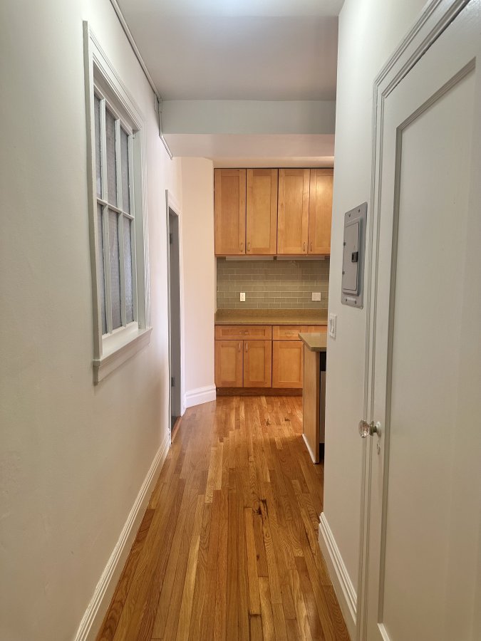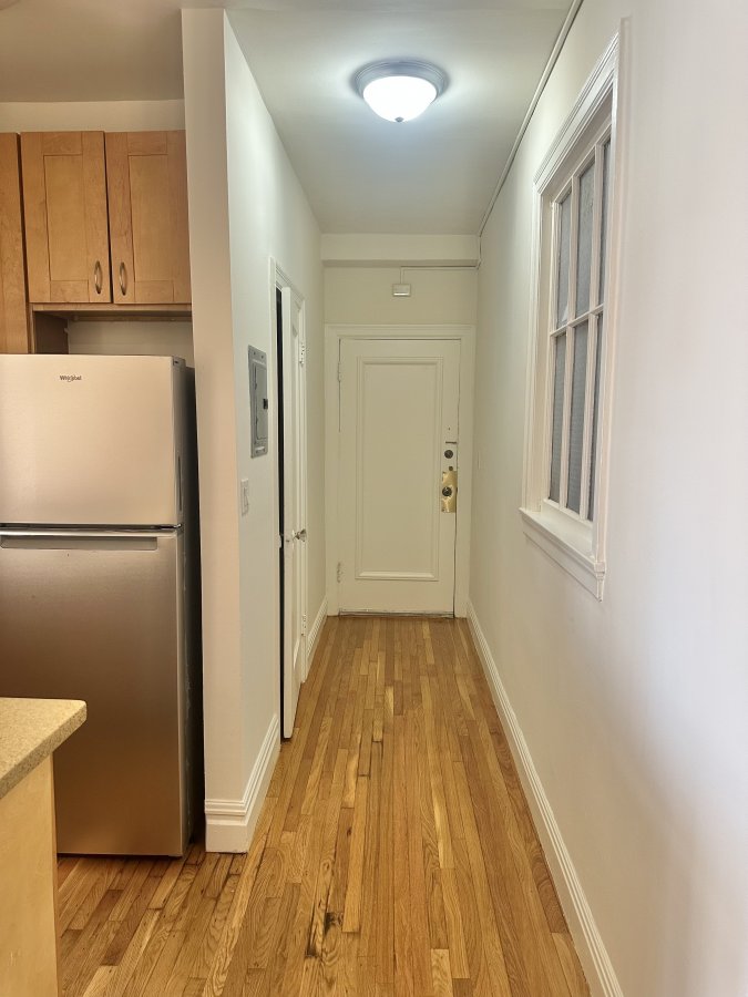 This newly updated upper-floor one-bedroom apartment features a thoughtfully designed layout with generous counter space and a hallway closet, perfect for both everyday living and entertaining. The sleek kitchen is equipped with brand-new stainless steel appliances and ample cabinetry, offering plenty of room for storage and organization. Hardwood floors run throughout the unit, adding warmth, character, and a touch of sophistication.