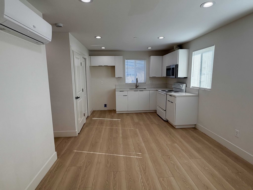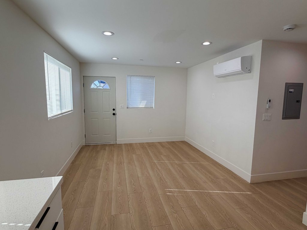 Welcome to this newly built three-bedroom, two-bath upstairs unit located in a desirable area of Torrance. The home offers a bright, open layout with wood-style flooring, recessed lighting, and abundant natural light that creates an inviting and comfortable living space. The modern kitchen features quartz countertops, white cabinetry, stainless fixtures, and will included a refrigerator, giving the space a clean and contemporary feel.Both bathrooms have been thoughtfully designed with designer tile, glass walk-in showers, and sleek vanities that elevate the overall finish of the home. Each bedroom includes ample closet space and its own mini-split A/C system, allowing every room to enjoy personalized comfort. The unit also offers in-unit laundry hookups and an included parking space for added convenience.To schedule a showing or request more information, please contact us directly. Utilities are not included. No pets.