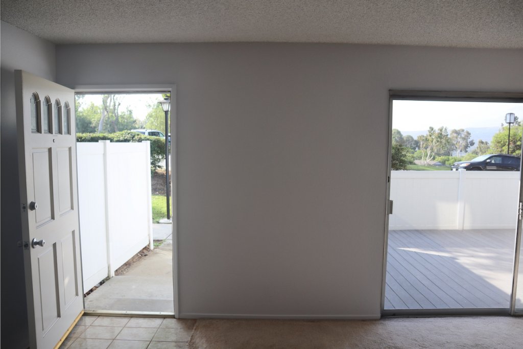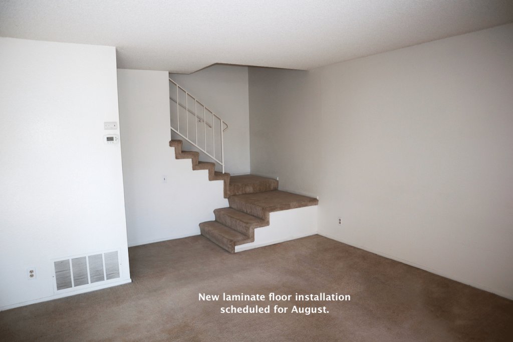 2 Bedroom, 1 ½ bath condo with view in quiet Yorba Linda location. At the end of a cul-de-sac across the street from a green belt with canyon views. New flooring (laminate/carpet), new bathtub/shower, ceramic tile bathroom floors, updated bathroom counters, faucets, and fixtures, and recently painted inside. Inside laundry hook-ups, central air conditioning, ceiling fans. Basic cable TV and internet included. Patio deck, 1,017 square feet, 1 car garage plus 1 private parking space, association pool/spa. No pets. No smoking. Nearest major cross street is Imperial Hwy and Esperanza Rd.