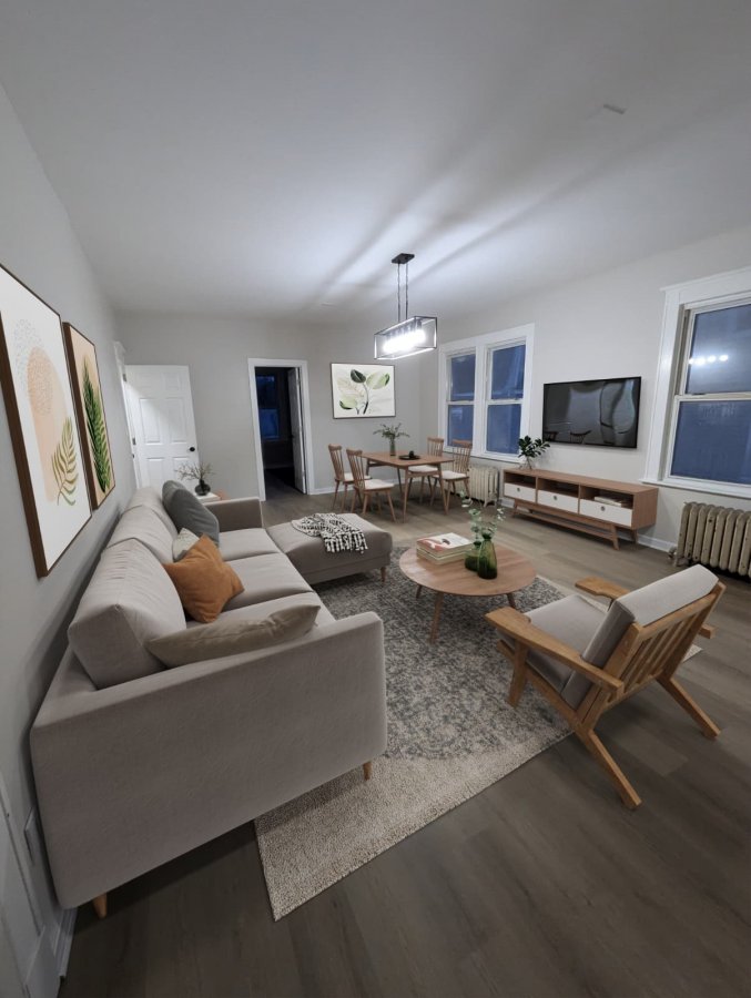 Freshly new renovated 3 bedroom apartment, with beautiful new kitchen, modern new bathroom, hard wooden floors, led lighting.