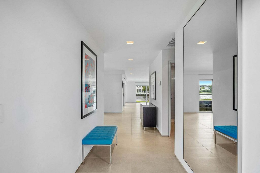 One of the best waterfront properties available in the exclusive, gated, Bermuda Rivera neighborhood! Single-story, bright, modern minimalist direct intracoastal home features an open concept floor-plan with breathtaking intracoastal views from every single room. Over sized pie-shaped backyard with comfortable and open entertainment areas with lounge seating, pool, grill, and TV. Under the sun all day, steps to the beach, right on the water. 3 bedroom, 2 bath modern minimalist home, with ultra contemporary walnut concealed kitchen (Miele & Thermador appliances) with matching high-end designer furniture. 130+ ft of direct intracoastal waterfrontage + 50 ft side canal, adding up to a one of a kind panoramic view onto the water. Quick walk to the Beach via walkway and deeded beach access!
