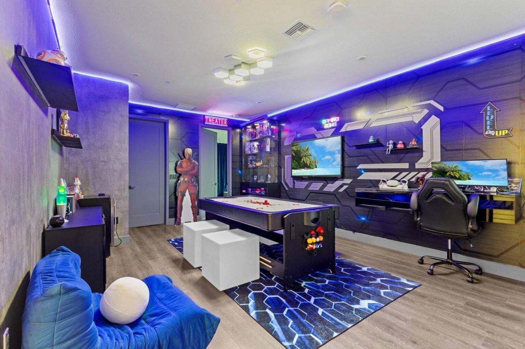 Rented through September 31st 2026-Annual Rental only *****Come see this magnificent fully furnished upgraded home featuring 6 bedrooms, 6 full bathrooms, theater room , game room and a spacious two-car garage with built in storage cabinets . Designed for contemporary living, the open floor plan creates a seamless flow, complemented by generous walk-in closets and a beautifully crafted gourmet kitchen. A grand view of the lake and a fenced backyard offer the perfect space for outdoor entertainment. Additional upgrades include motorized Stylish custom window treatments and sophisticated light fixtures , sonos sound system and outdoor mosquito misting spray. New adjacent shopping center Publix anchored opening in January 2026- Amenities galore at the main clubhouse.