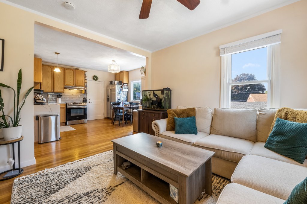 Broker Fee Paid By Landlord. This beautiful 2-bed + office/den, 1-bath unit offers 950 sqft of stylish living space. Updated bathroom, contemporary kitchen, modern finishes. This apartment is perfect for culinary enthusiasts and features sleek countertops and ample storage space. Adjacent to the kitchen, you have an in-unit Washer & Dryer. The living area is ideal for relaxation and entertaining while you cook. A unique spiral staircase adds a touch of architectural flair as you ascend to the second living level. Top floor boosts the 2nd sundrenched bedroom and an office space or workout zone. Thoughtfully designed to maximize space and natural light, providing cozy retreats for rest and work. Two Tabdem Off-Street Parking spots are included. No Garage Access. January 1st Move-in with flexibility. Conveniently located near Oak Grove Orange Line MBTA, Pine Banks Park, and Forest Dale Cemetary.