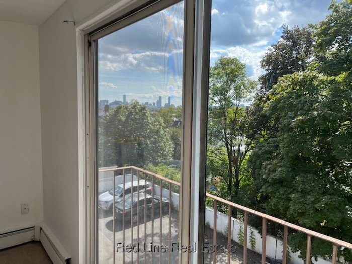 Porter Square - Corner unit in a brick building with a phenomenal roof deck. 1/2 mile to subway. Renovated galley kitchen with Dishwasher and Garbage Disposer with pass-through to Living/Dining area. Wall-to-wall carpeting. Built-in air conditioner. Coin-operated laundry. Storage room. Parking, heat, and hot water included in rent.