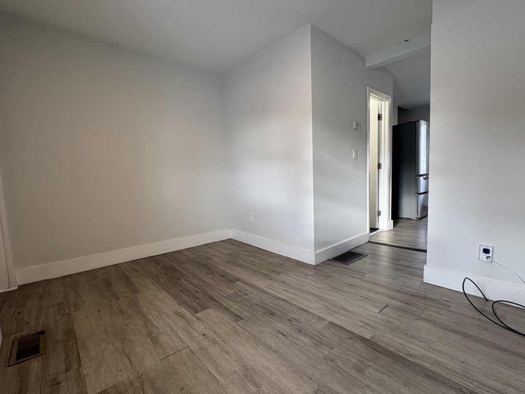 The apartment offers updated flooring throughout with no carpet, refreshed fixtures, and a clean, modern feel. One reserved off-street parking space is included, along with access to a shared backyard and porch area.
