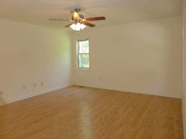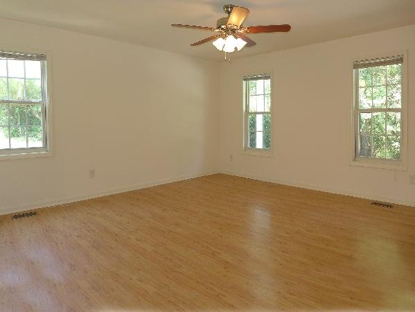 A covered front porch leads into the living room of this well maintained home. This room has hardwood style laminate floors and a ceiling fan. The large kitchen combines with the dining space. A bay window fills the room with natural light. The kitchen has wood style laminate floors, a pantry closet, generous cabinet space, stainless appliances, and recessed lighting. A washer and dryer are also included.