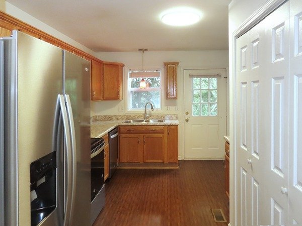 The kitchen exits in back to the patio behind the home. There is ample off street parking in front of the duplex. Pet with fee and prior approval; only one indoor pet permitted.
