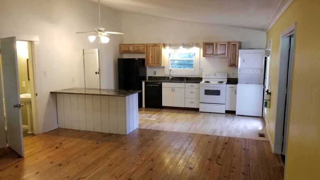 Downtown Mill House (single family) located 1/2 block from the Farmers Market and Carrboro Town Commons; 4 blocks from Weaver Street Market and Carr Mill Mall. Available for as early as 7/7/26 or as late as 8/1/26 (tenant's choice) with renewal options. Small discount for couple (2 persons) renting the house. Purple Mill house on the corner of Bim and Jones Ferry - Hardwood floors, Open LR/Kitchen area, includes historic original bead board in the front 2 bedrooms, rear bedroom has retro modern design with lofted ceilings, built in shelving and private entry, open living room with lofted ceilings and skylight. Knotty pine floors throughout. The kitchen has been updated to include dishwasher, new cabinets, and granite countertops. NEW Gas heat and central air replaced in 2020. Washer and Dryer included. Onsite parking for up to 4 cars.