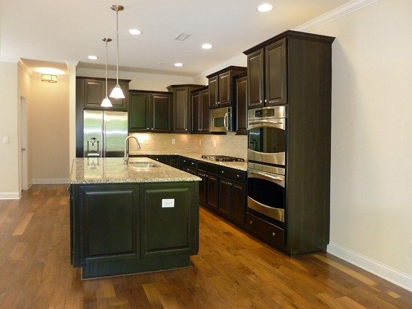 This three level end unit, features a bright and open floor plan. The living room is open to the kitchen and dining space - all with hardwood floors. There is a corner gas-log fireplace with marble surround and a ceiling fan in the living area. The kitchen features granite counter tops, tile backsplash, attractive cabinetry, a center island with a breakfast bar, stainless appliances, a pantry closet, and recessed, pendant and under counter lighting. There is an exit from the dining area to the screened porch on the back side of the home. The screened porch has tile flooring and a ceiling fan.