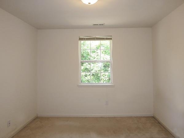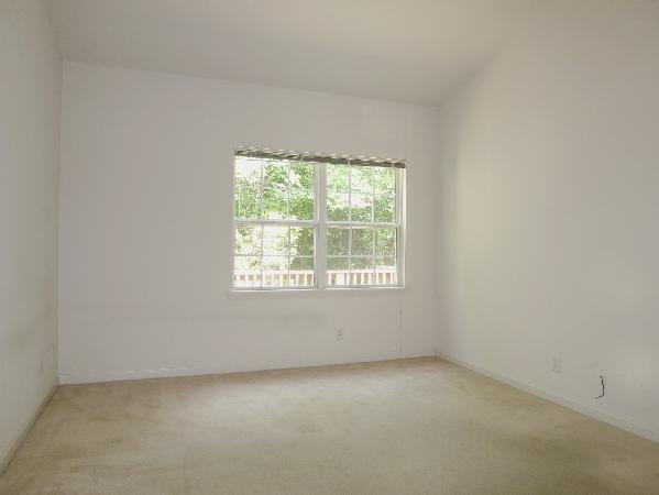 This townhome has a bedroom on the main level. This bedroom features a vaulted ceiling and direct entry to shared full bathroom. The laundry closet is on the first, and a washer and dryer are included. The remaining three bedrooms are on the second level. A shared full bathroom with a dual sink vanity is on this level of the home. All of the bedrooms have carpet.