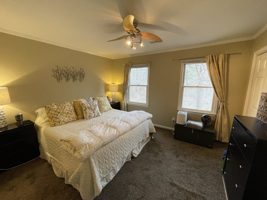 There are two bedrooms upstairs, each with their own bathroom (also there is a half bath on the first floor). In addition, there is a huge attic for storage.