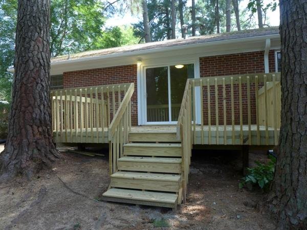 The home has a deck on the back side. There is a storage closet on the back side of the home. The home has driveway parking. Pet with fee and prior approval.