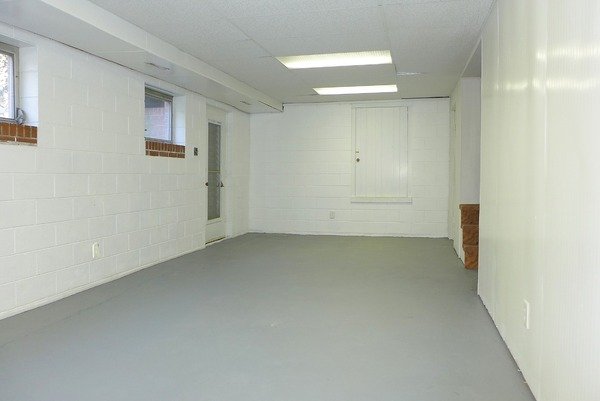 The basement rec-room has cement flooring and an exit to the garage. The two-car garage has two additional storage rooms.