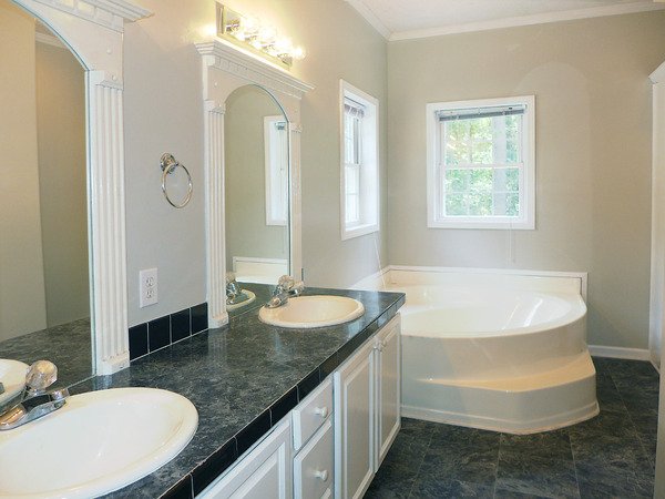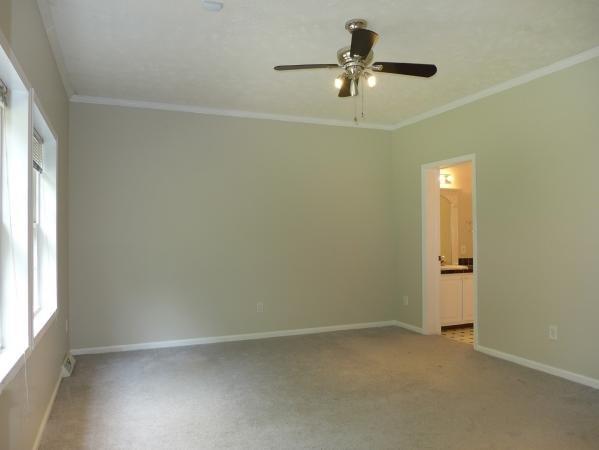This home has a split bedroom plan. All of the bedrooms have carpet, ceiling fans, and walk in closets. The master bathroom features a dual sink vanity and a separate shower and a corner garden tub. The second bathroom is convenient to the two additional bedrooms.