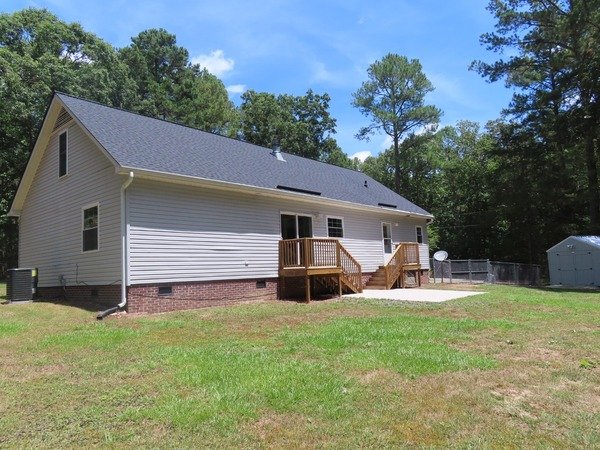This one level home in Orange County is fifteen minutes to downtown Chapel Hill, UNC and Carrboro. The home is on an over 2 acre lot at the end of a private road. The yard offers both open lawn areas and natural wooded areas.
