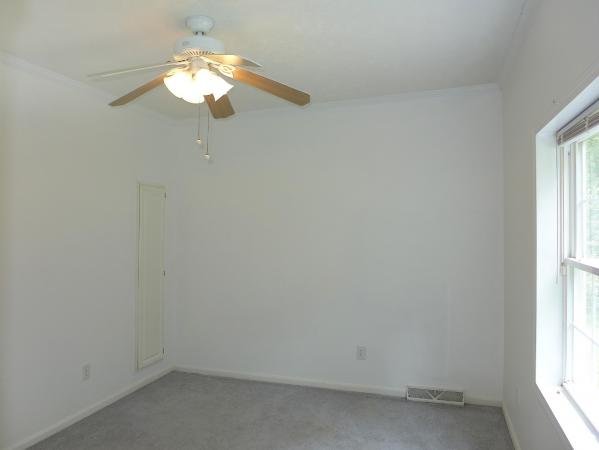 This home has a split bedroom plan. All of the bedrooms have carpet, ceiling fans, and walk in closets. The master bathroom features a dual sink vanity and a separate shower and a corner garden tub. The second bathroom is convenient to the two additional bedrooms.