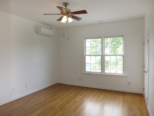 All bedrooms are on the second level. Each bedroom has a ceiling fan and a supplemental mini split ac unit. The master bedroom has a raised trey ceiling, an en suite master bathroom and a walk-in closet. The master bathroom includes a dual sink vanity, a garden tub, and a separate tile surround shower. The second full bathroom is also on this level. The laundry closet is on the second level, with a washer and dryer included.