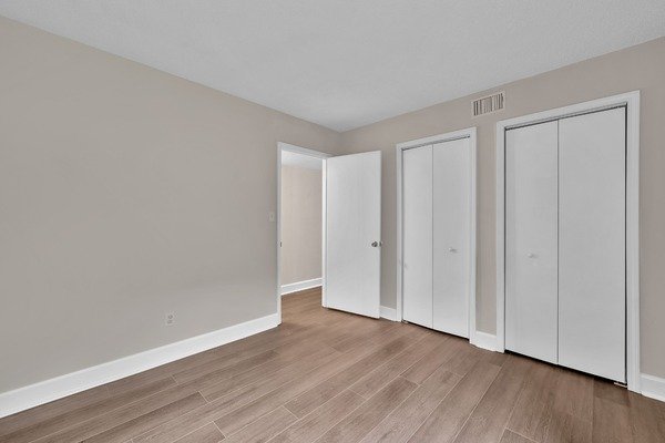 The primary bedroom has a walk-in closet and private half bath. The second bedroom has two double door closets. The full, shared bathroom is located in the hallway convenient to both bedrooms. There is a linen and a coat closet on this hallway.