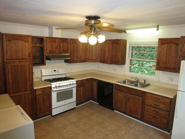 The living room and both bedrooms have hardwood floors. The kitchen includes appliances, with a gas range, refrigerator and dishwasher. A washer and dryer are also included and located in the kitchen. There are ceiling fans in the kitchen and both of the bedrooms.
