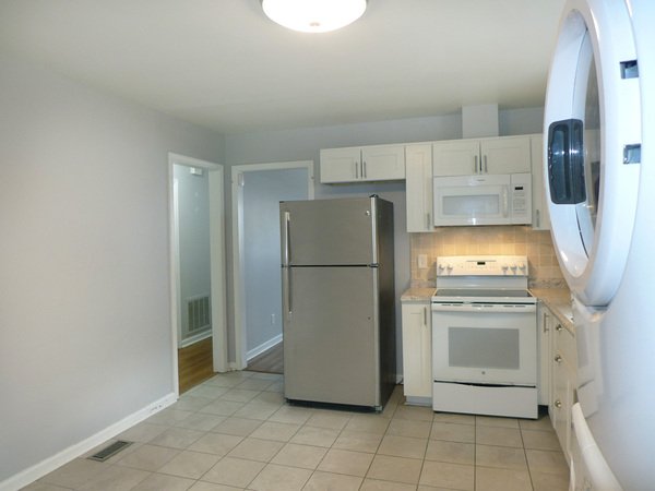 This one level duplex is five minutes to the restaurants, shops, theaters, and ballpark of downtown Durham, and 10 minutes to Duke University. The living room has hardwood flooring and leads into the kitchen. The kitchen features tile flooring and updated counters and cabinets. A range, refrigerator, dishwasher, built-in microwave, and a front load stacked washer and dryer are included. There is an exit from the kitchen to the fenced backyard.