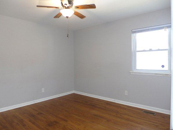 Both bedrooms have hardwood floors and a ceiling fan. The bathroom is convenient to both bedrooms. The updated bathroom has tile flooring and surround.