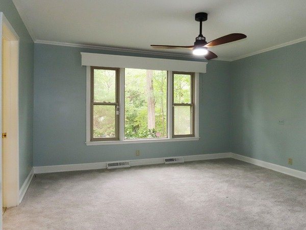 The remaining bedrooms off the entry foyer. There is carpet in these three bedrooms. The master bedroom has a ceiling fan, a double door closet, and a private bathroom. The bathroom has tile flooring and a tub-shower. There is a ceiling fan and built-in desk in one of the remaining bedrooms. Both bedrooms are across from the shared hallway bathroom. This bathroom has tile flooring and a tub-shower.
