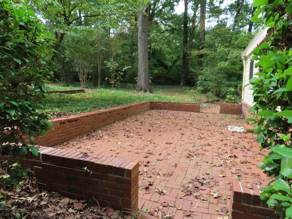 The backyard includes a brick patio and walkways, and natural and cleared spaces. There is ample parking in the driveway.  There is a large attached storage closet at the end of the driveway. Pet with fee and prior approval. [Rear awning inoperable. Fence not secure.]