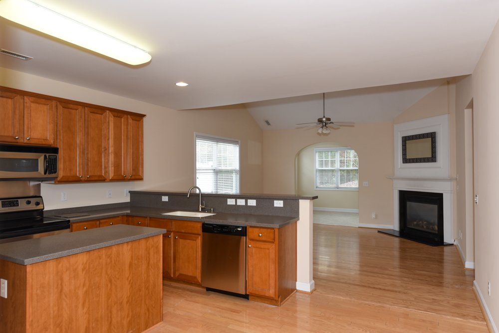 This property has a superb floorplan that is open and has lots of areas that can be setup in flexible ways. There is a dining room convenient to the kitchen which has an additional area for a breakfast table. The Main living area has hardwood floors, vaulted ceilings and a gas fireplace and connects to a bright and spacious sunroom. The primary bedroom is on the main floor and has a freshly renovated bath with new vanity cabinet and granite countertops and double sinks. This bedroom features a walkin closet.