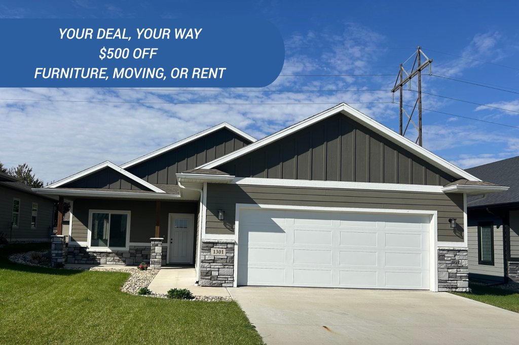 PRICE REDUCTION- WAS $2,000 NOW $1,950. Your Deal, Your Way!Get $500 off — apply it toward furniture, a moving job, or rent.Terms and conditions apply.The Experience is proud to offer deposit-free living to qualified renters through Obligo! We understand that moving costs can add up, so we want to extend financial flexibility to our residents.Enjoy comfortable living in this beautiful 2-bedroom, 2-bath home with 1,438 sq. ft. all on one level. Located just blocks from Dawley Farm Village, you’ll have quick access to shopping, dining, coffee shops, and more. The open-concept layout features vaulted ceilings, a spacious kitchen with custom cabinets and a large island, plus a versatile bonus room for an office or nursery. A covered patio fenced yard with underground sprinklers, and an insulated garage complete this move-in ready home.Please reach out to schedule a showing today at (605) 219-9470!Walkthrough Video- https://youtube.com/shorts/JKdAtjAay2o