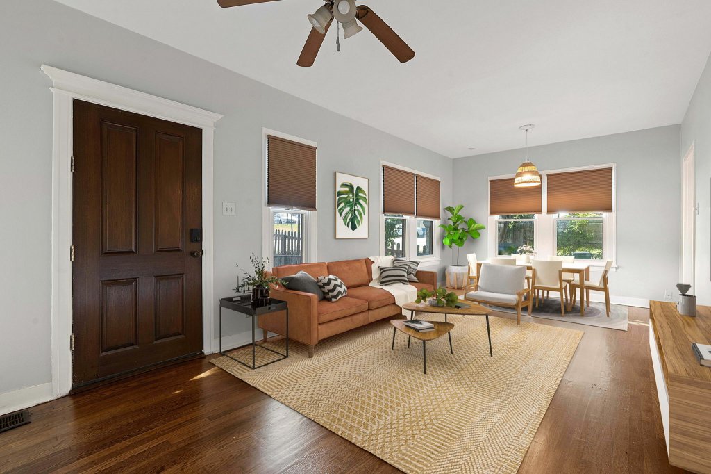 This charming 1930s bungalow, nestled in the highly sought-after Travis Heights neighborhood, is a delightful blend of vintage charm and modern convenience. This home boasts classic architectural details such as a welcoming front porch, original refinished hardwood floors, and original woodwork that evoke the character of its era. Also, included is an updated bathroom and a large master suite with a beautiful, sunny office/bonus room. The abundance of windows allows for natural light, creating a warm and inviting atmosphere throughout. The spacious living area flows seamlessly into a cozy dining area for entertaining and family gatherings. The outdoor space is equally enchanting with mature trees providing shade and tranquility. Located within walking distance to beautiful parks, a neighborhood pool, local stores/restaurants, hike and bike trails, and Big Stacey Park. New paint throughout, solar panels, and recently refinished original oak floors. This home is a rare find and is perfectly situated for enjoying the vibrant outdoor lifestyle that Travis Heights is known for.